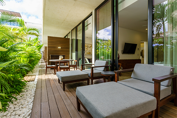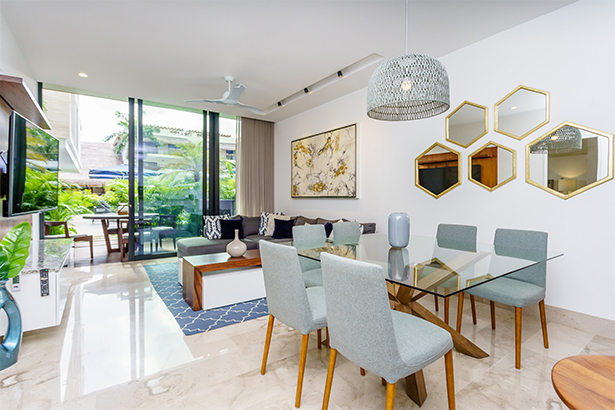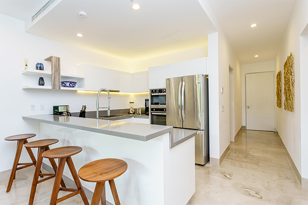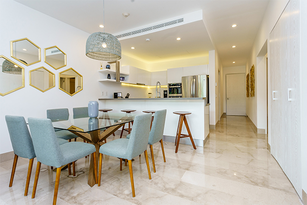 Luxury apartment with 3 bedrooms, perfect for 6 people. It has 1 King Size bed in the Master Bedroom, 1 queen bed in the second bedroom and 2 single beds in the third. The apartment has a view to the pool and all the amenities we have for you.