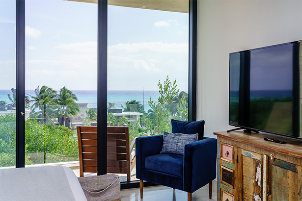 Luxury apartment with 2 bedrooms, perfect for 4-6 people. It has 1 King Size bed in the Master Bedroom and 2 queen size beds in the second bedroom. The apartment has a view to the ocean and all the amenities we have for you.