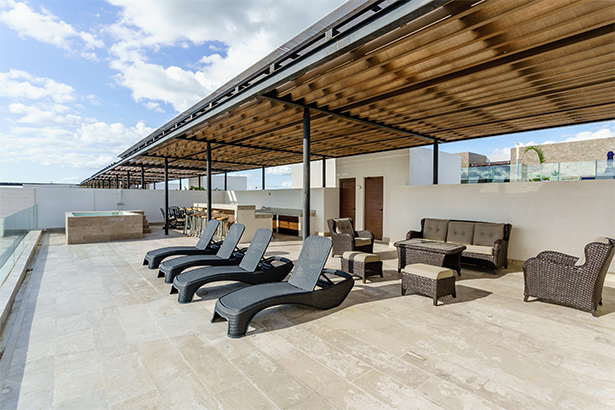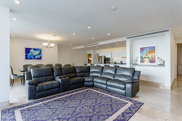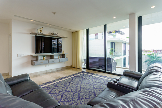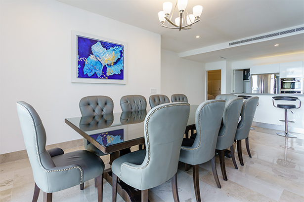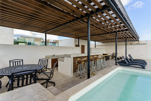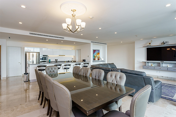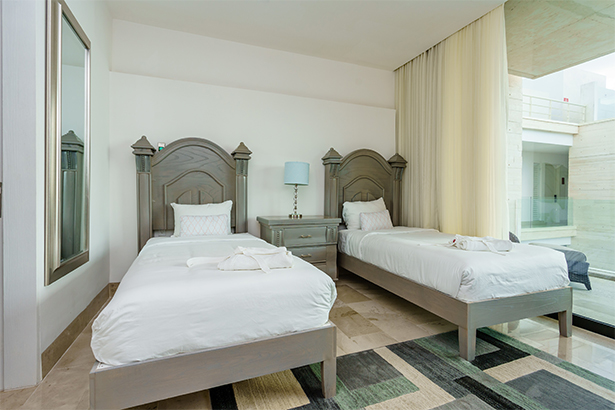 Luxury Penthouse with 4 bedrooms and a utility room, perfect for 8 people. It has 1 king size bed in the main bedroom, 1 queen size bed in the second bedroom, 2 single beds in the third and fourth bedroom and a single bed in the utility room. The apartment has a view of the pool and all the amenities we have for you.